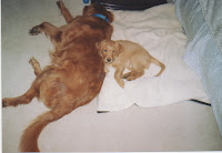 My husband gave me Buster as a Christmas gift that year. When we went to look at the litter of puppies, Buster came over and sat down next to me. I held him all the way home, his giant puppy paws covering my heart. Our other golden retriever Elvie was not entirely pleased with her new roly-poly little brother. But, he quickly won her over – she could still be the boss – and she came around. Before long it was hard to imagine our family unit without Buster.